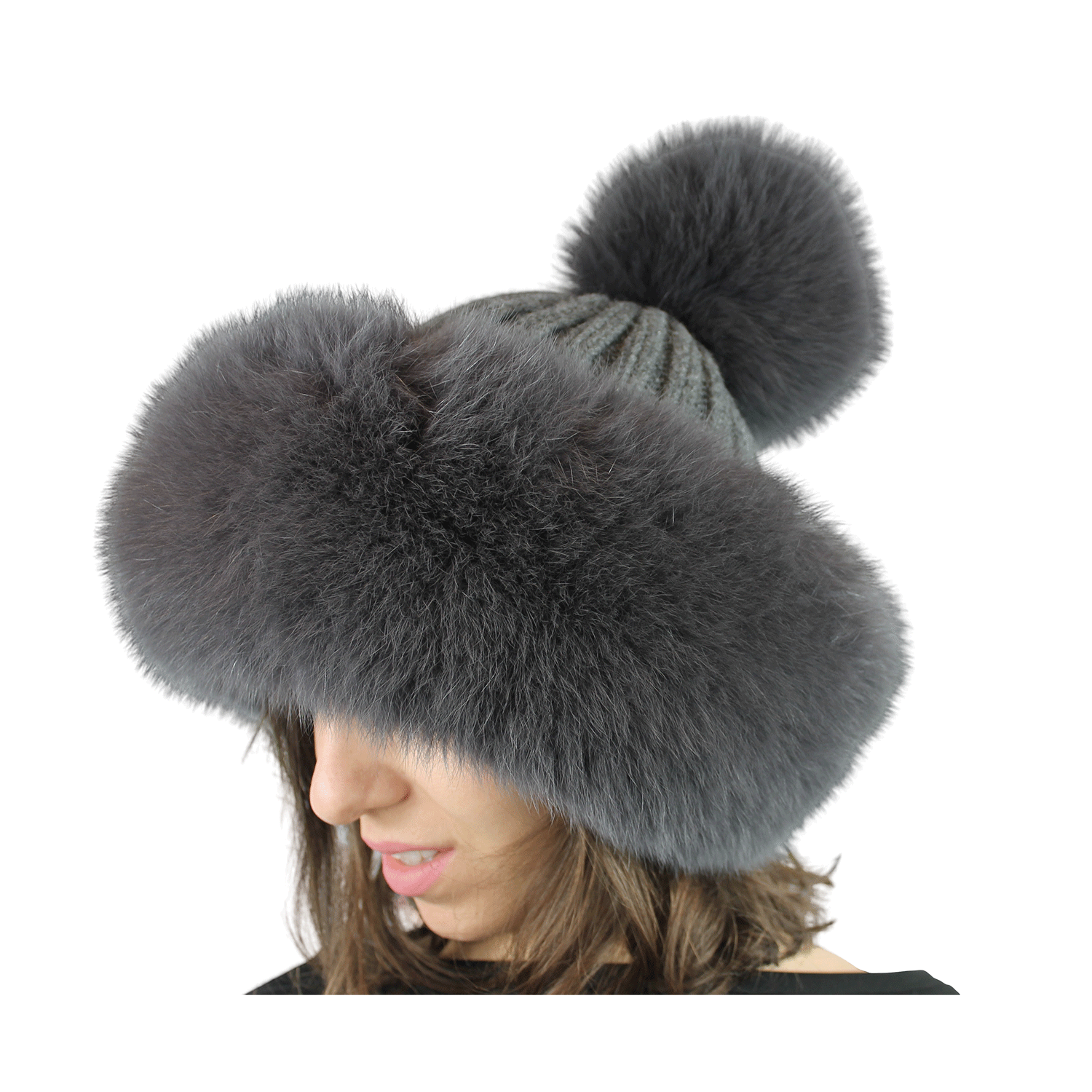 Colbacco di Volpe con cupola in maglia e pon pon di volpe.