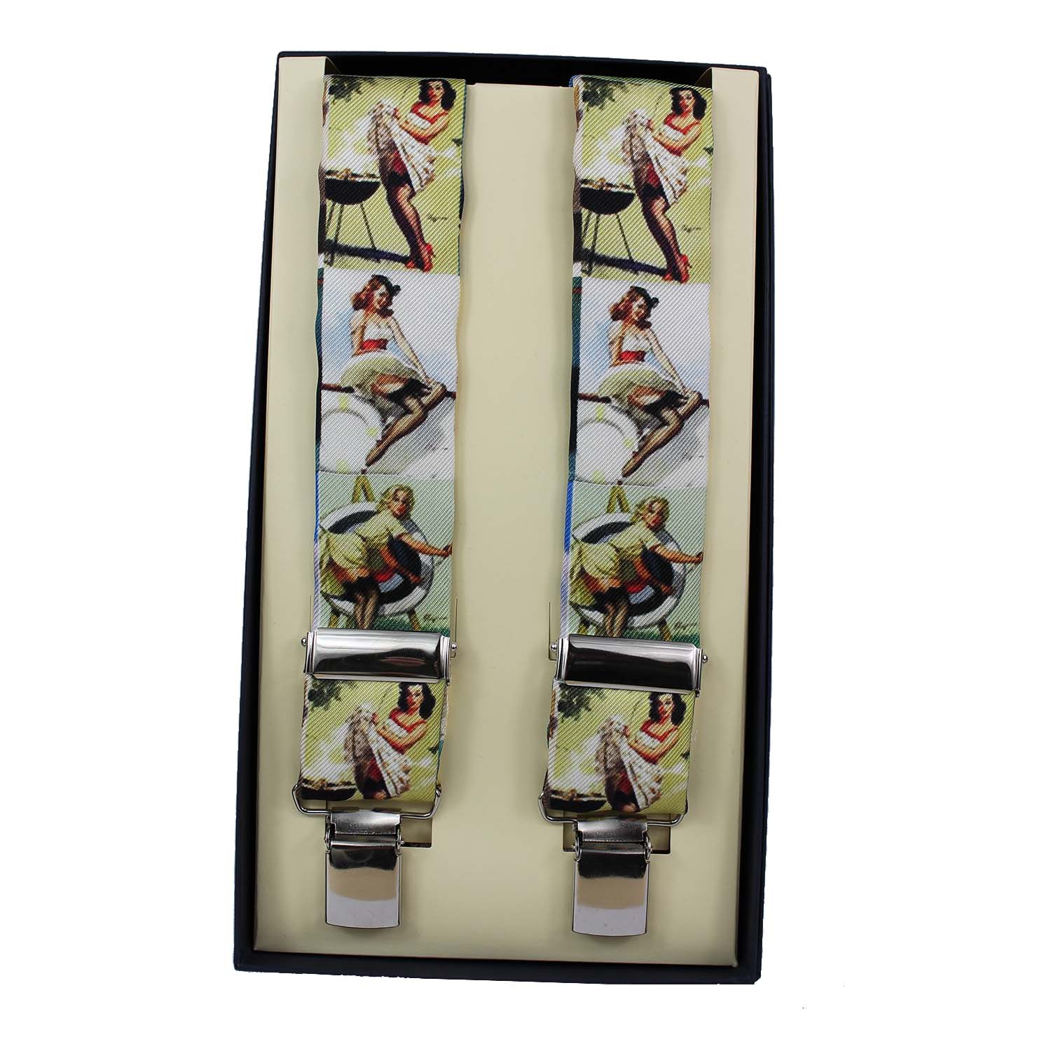 Bretelle artigianali Made in Italy in seta – Fantasia disegno Pin-up