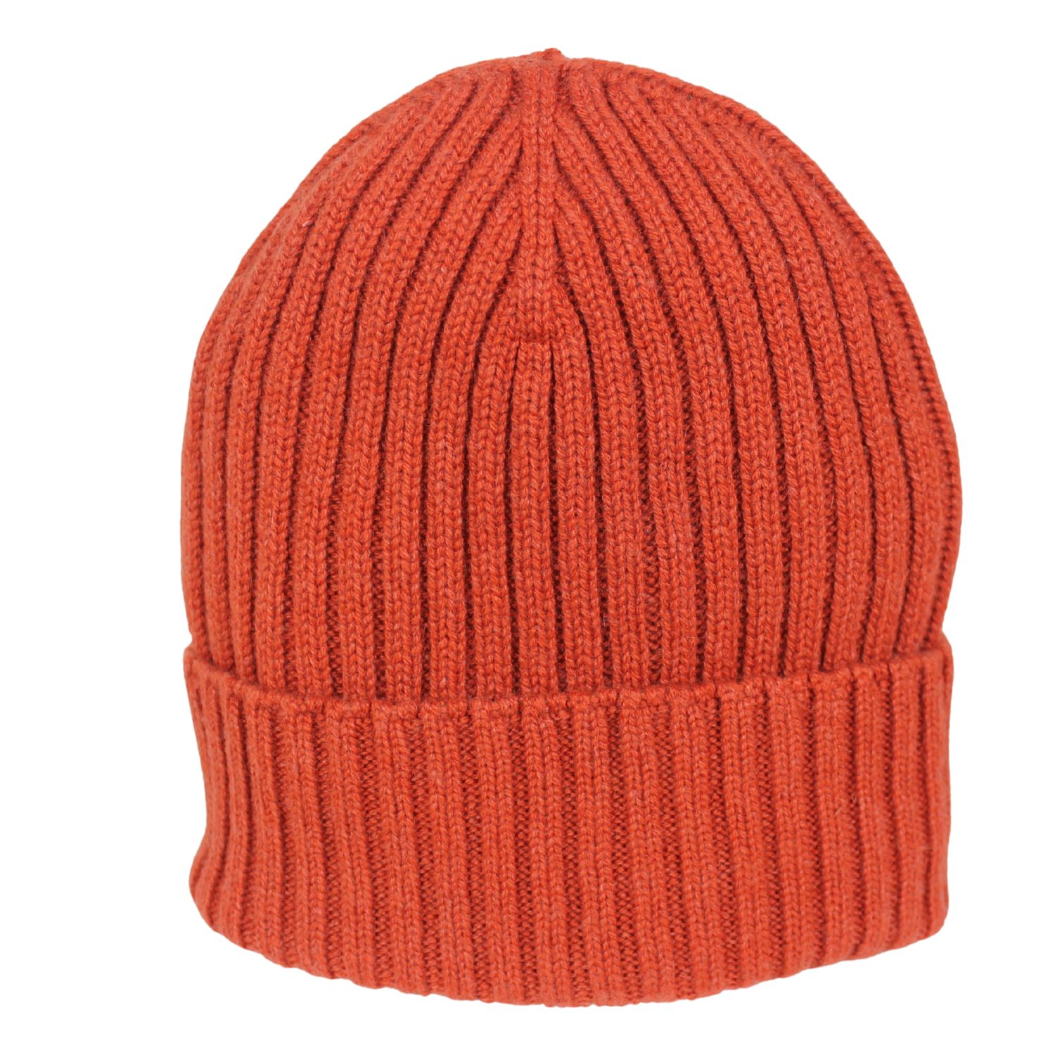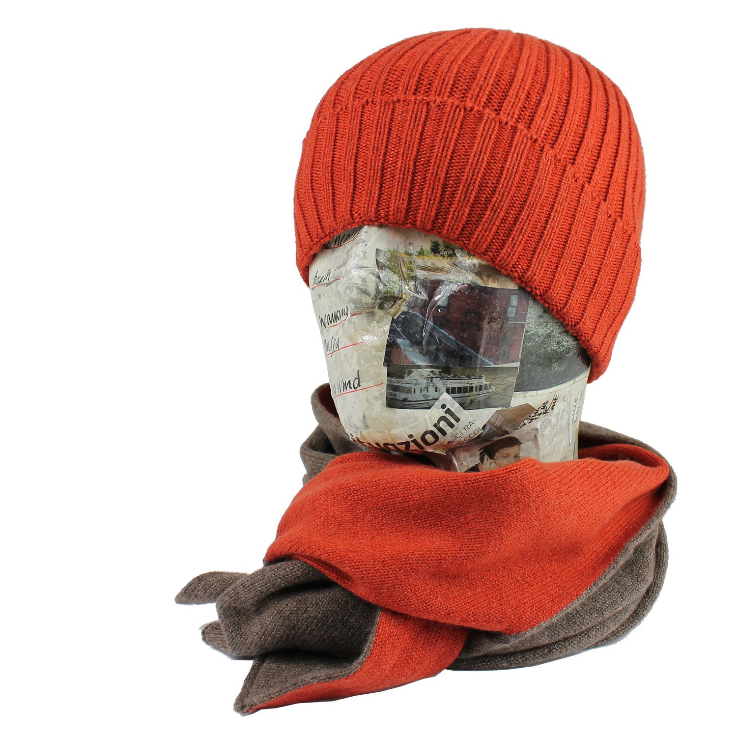 Berretto in puro cashmere colore zucca – Cuffia a coste con risvolto