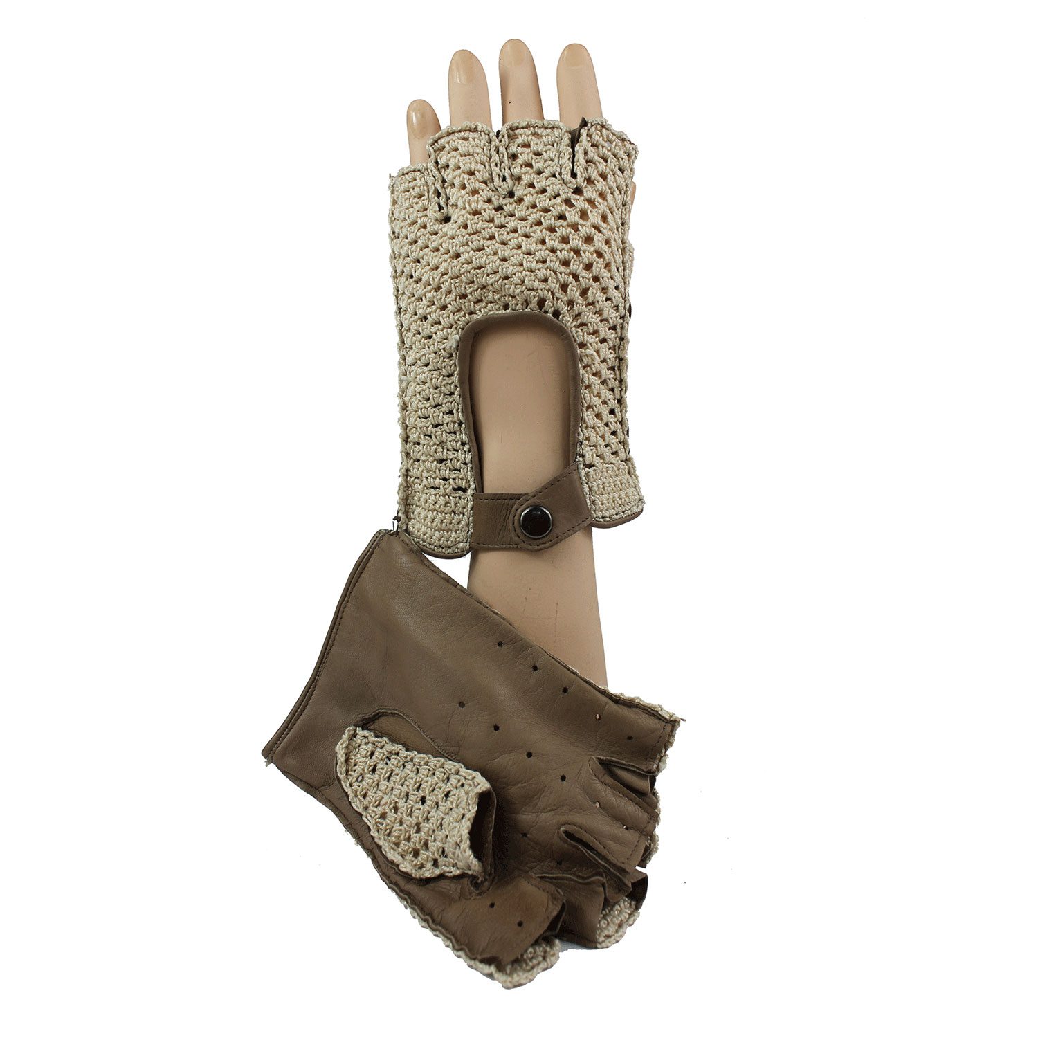 Guanto Guida in Crochet e Pelle mezze dita – Prodotto artigianale